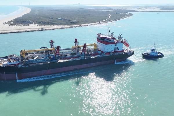 On January 27, 2026, Manson Construction’s newest hopper dredge, the FREDERICK PAUP, departed the Seatrium AmFELS shipyard in Brownsville, Texas, bound for Mobile, Alabama. It is the largest self-propelled hopper dredge ever constructed in the U.S. Image courtesy Manson Construction