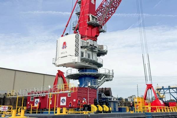 The CBG 500 E enhances river operations and marks a major step in strengthening the regional logistics infrastructure on the Mississippi River. Image courtesy Liebherr