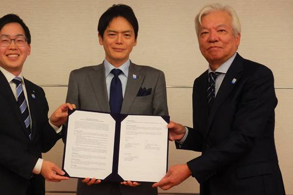 Kohei Yamamoto, Head of Public Affairs-Japan, Maersk, Dr. Takeharu Yamanaka, Mayor of Yokohama and Masashi Fujii, President of Mitsubishi Gas Chemical signed the MOU. (Source: Maersk)