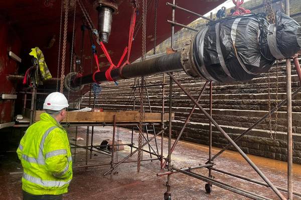 Shaft removal during stern tube repair procedures courtesy of Marine and Industrial Transmissions. Photo courtesy Marine and Industrial Transmissions