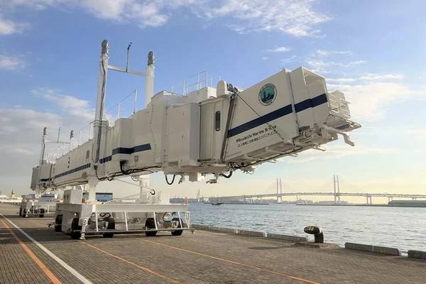 Mitsubishi Heavy Industries Transportation and Construction Engineering, Ltd. (MHI-TC), a part of Mitsubishi Heavy Industries (MHI) Group, has built and completed delivery to Yokohama City of the Mitsubishi Marine Bridge (MMB), a self-propelled mobile seaport passenger boarding bridge (SPBB). Manufactured at MHI's Mihara Machinery Works in Hiroshima Prefecture, the MMB was put into service at Osanbashi Yokohama International Passenger Terminal on January 13. Capable of connecting to the large cruise ships that dock at Osanbashi, this is MHI-TC's first delivery of a mobile MMB.
