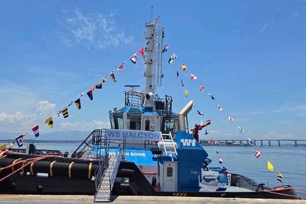 Wilson Sons held a launch ceremony for the tugboat WS Halcyon Thursday, January 29, in Rio de Janeiro. It is the first of a new series of three high-powered tugs.