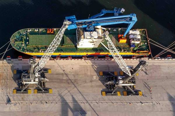 The two LHM 600 cranes supplied by Liebherr are configured for tandem operations, allowing combined lifts of up to 400 tons for project cargo and heavy breakbulk. Each crane operates primarily on an advanced electric drive system designed for efficiency andlower emissions, with a diesel engine available as a backup to ensure operational continuity under all conditions.